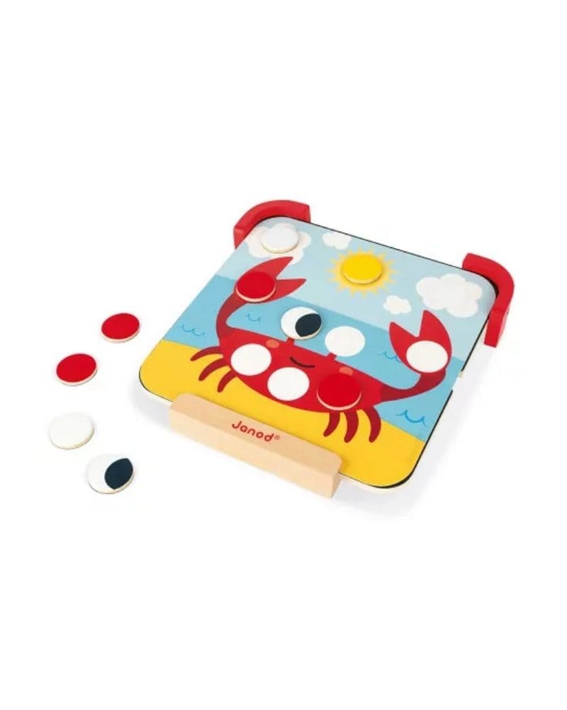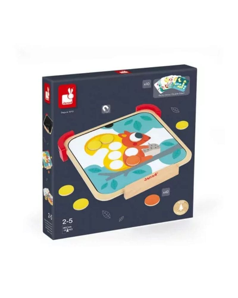 Fomenta la creatividad y aprendizaje de colores con este atril magnético. Perfecto para manos pequeñas, incluye discos de colores y una base de pizarra. Completa los dibujos con 10 tarjetas doble cara y 42 discos magnéticos. ¡Además, viene con una caja de tizas para más diversión artística! Ideal para pequeños artistas.