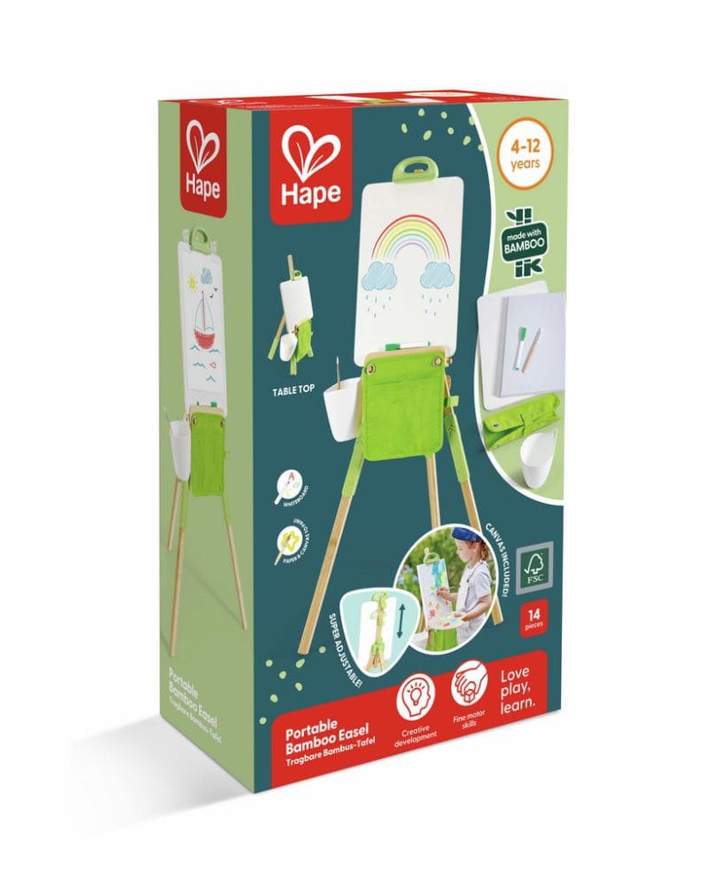 Un compañero creativo, portátil y ecológico para jóvenes artistas. Fabricado con bambú sostenible y diseñado para acompañar a los niños en sus aventuras artísticas, ya sea en casa, al aire libre o durante los viajes. Ligero, fácil de montar y con accesorios incluidos para empezar a pintar de inmediato.