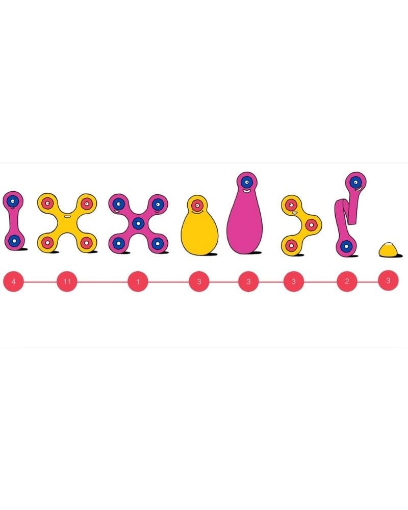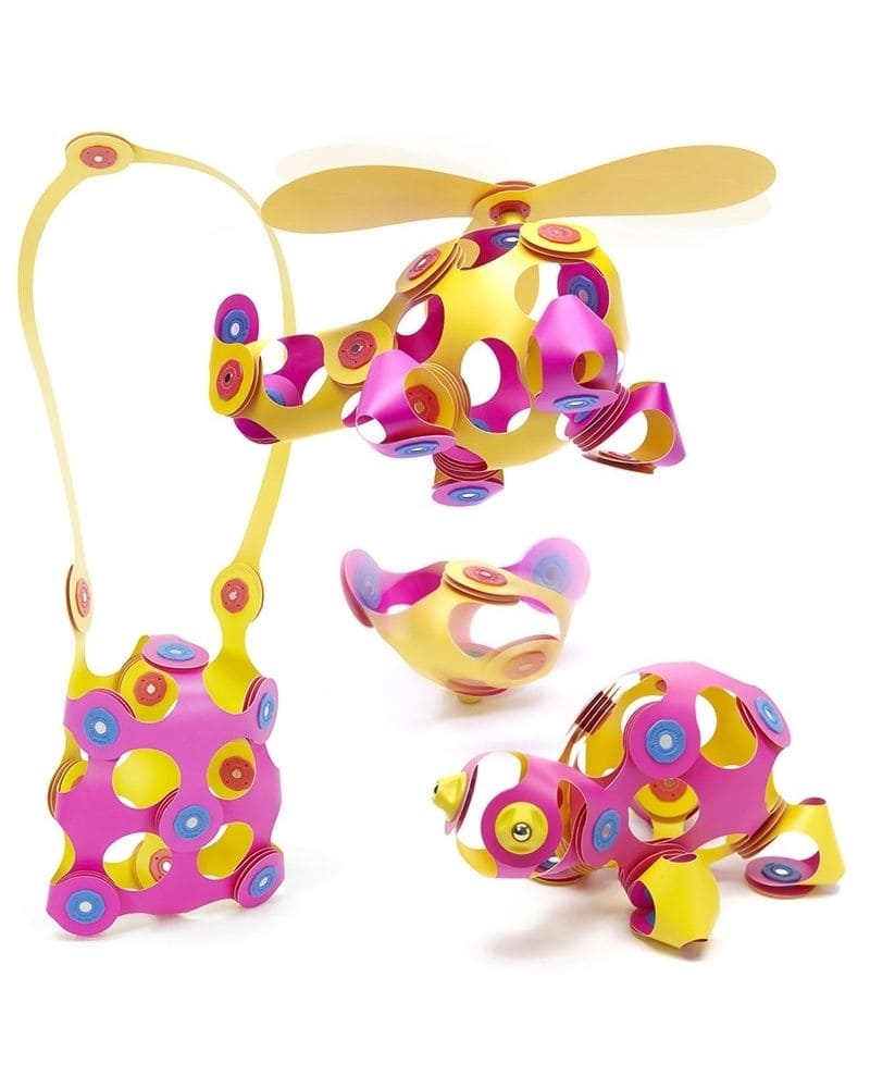El pack Crew ofrece una avalancha de posibilidades creativas, desde molinillos hasta hélices. Contiene 30 piezas en 8 formas únicas de CLIXO, incluidas 3 “spinners” para poder construir creaciones que giren sobre sí mismas.