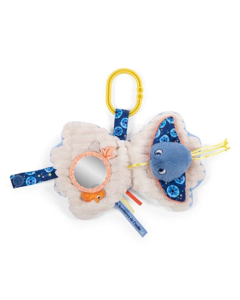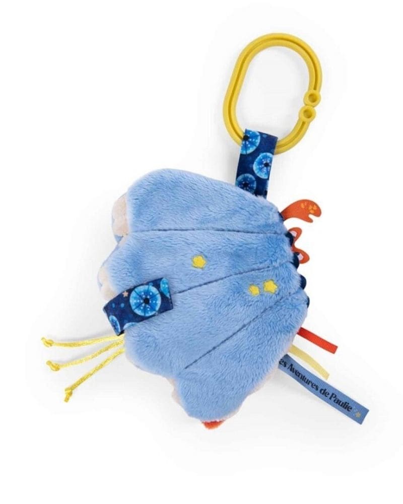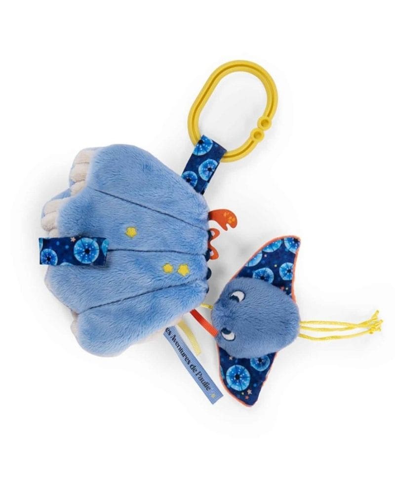 Esta encantadora concha está llena de actividades sensoriales pensadas para estimular al bebé mientras juega. Incluye un pequeño espejo para el autodescubrimiento, etiquetas y cintas de colores que invitan a ser atrapadas y manipuladas, y papel crujiente en su interior que emite un divertido sonido al apretarlo. Gracias a su práctica argolla, puede colgarse fácilmente en la cuna, cochecito o silla de paseo, convirtiéndose en un juguete ideal para llevar a cualquier parte.