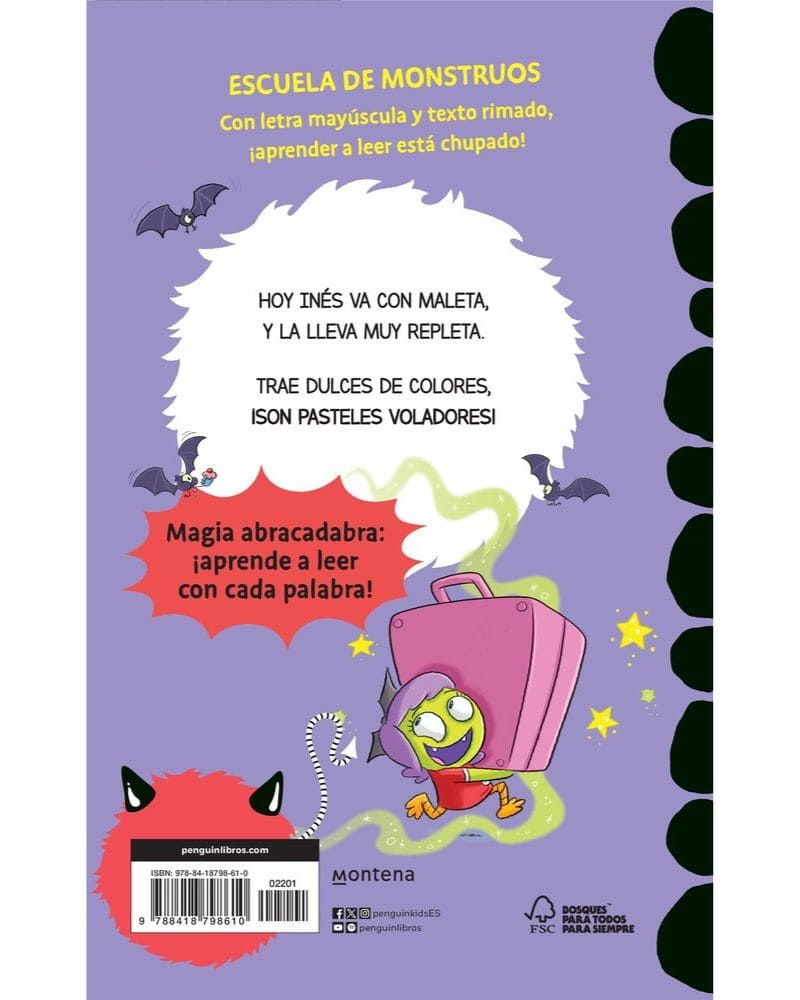 Es el cumpleaños de Inés y ha preparado una sorpresa deliciosa: ¡pasteles voladores de colores para todos! Pero los dulces no se quedan quietos… empiezan a saltar y volar, dejando todo pringoso. ¿Cómo lo solucionarán los monstruos de la clase?