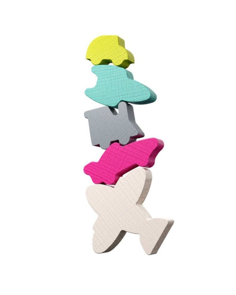 A continuación, coloca los vehículos de madera en el orden exacto indicado, asegurándote de mantener el equilibrio de toda la torre. A medida que avanzas, los retos se vuelven más complejos y exigentes.
