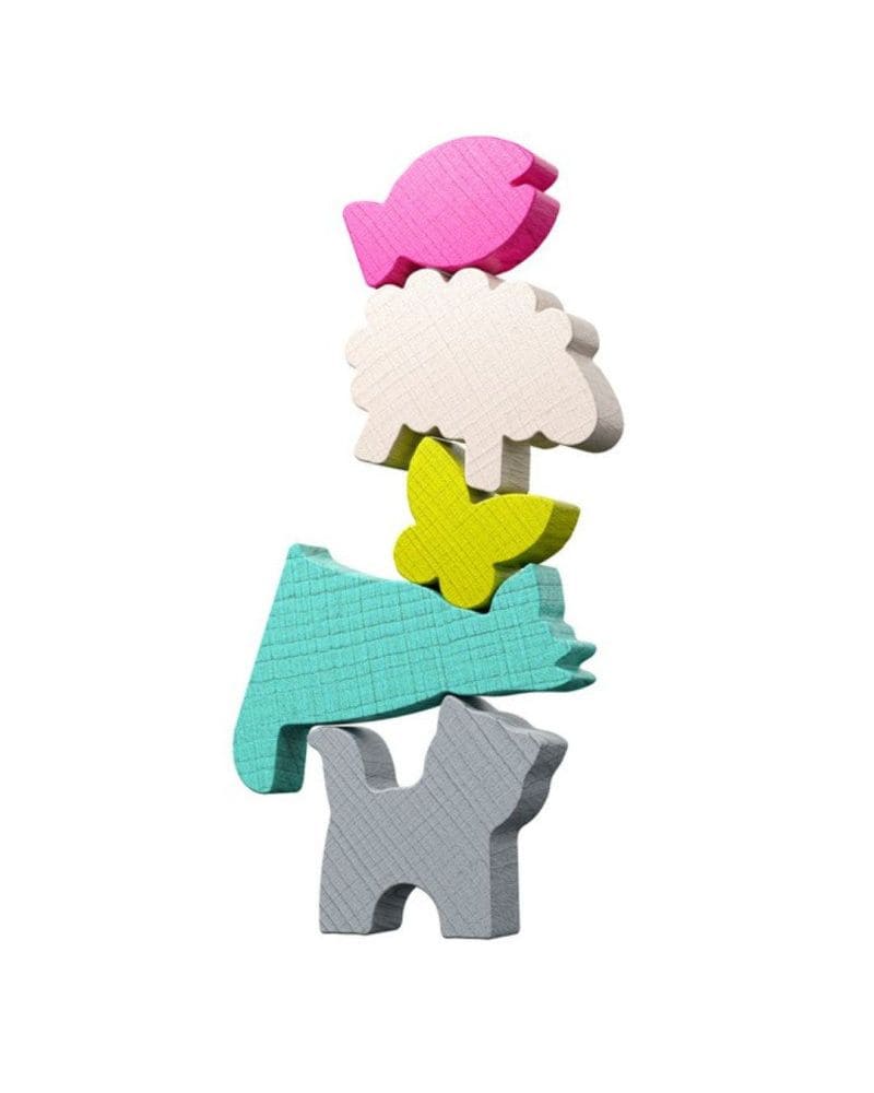 ¿Verde sobre azul sobre rosa? Parece fácil… pero no lo es tanto. Este juego de lógica y destreza te reta a apilar hasta cinco pequeñas piezas de madera siguiendo un orden específico en cada desafío.