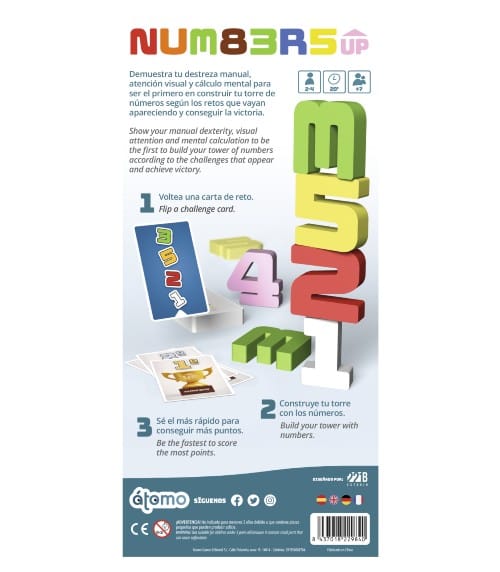 - Reto a la vista: Voltea una carta de reto que indicará cómo deben colocarse los números en tu torre (pueden ser sumas, resto, patrones o combinaciones específicas).