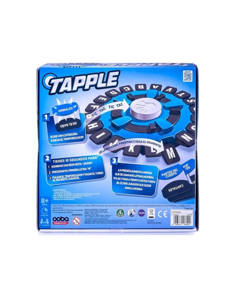 ¡Pon a prueba tu rapidez mental con Tapple! Elige una categoría, di una palabra que encaje, pulsa la letra inicial y pasa la rueda antes de que se acabe el tiempo. Un juego frenético y educativo que garantiza risas y emoción para toda la familia.