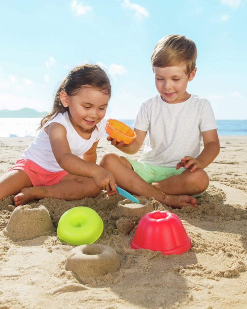 Este set permite a los niños crear deliciosos pasteles de arena y flanes, moldeándolos y cortándolos en trozos como si fueran reposteros profesionales. Incluye todo lo necesario para preparar hasta tres creaciones diferentes, fomentando el juego simbólico y la creatividad mientras reproducen la experiencia de hornear postres.