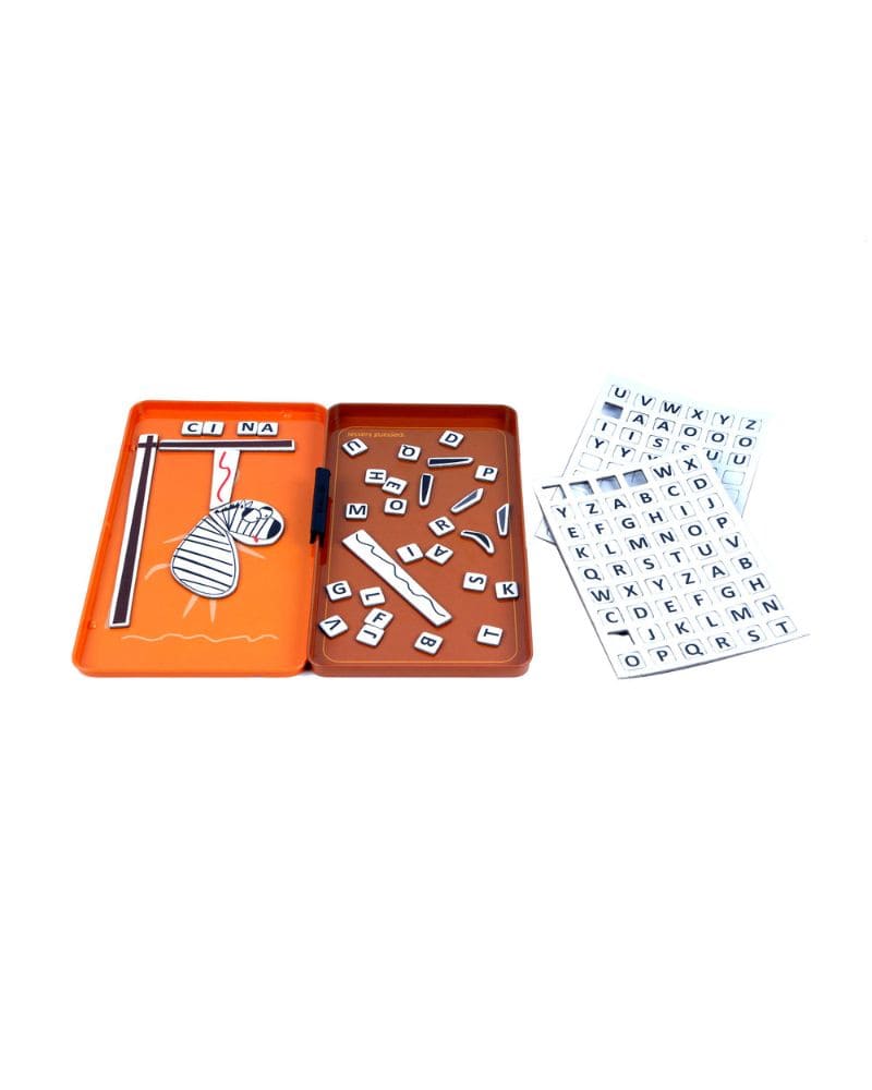 El juego To Go El Ahorcado es la versión portátil del clásico juego de palabras, presentado en una práctica caja de lata con piezas magnéticas para jugar en cualquier lugar. Ideal para viajes o momentos de ocio, combina diversión y aprendizaje en un formato compacto.