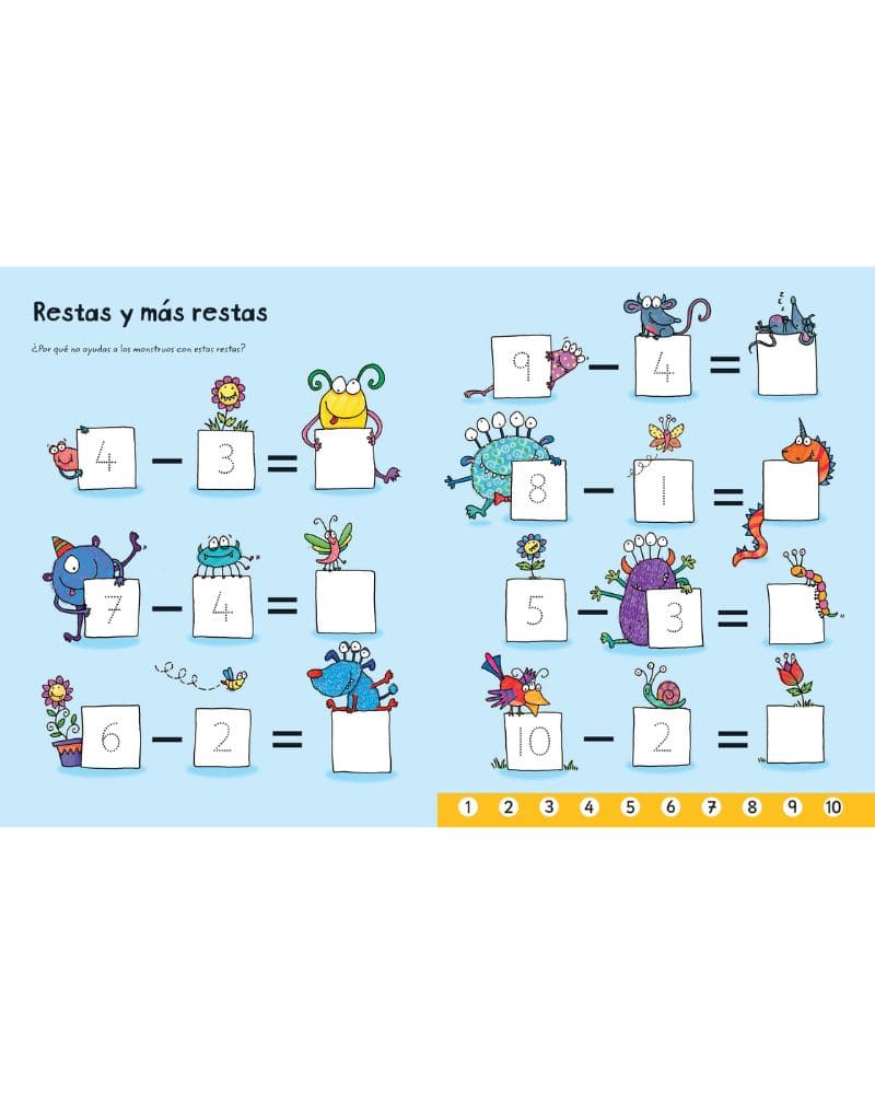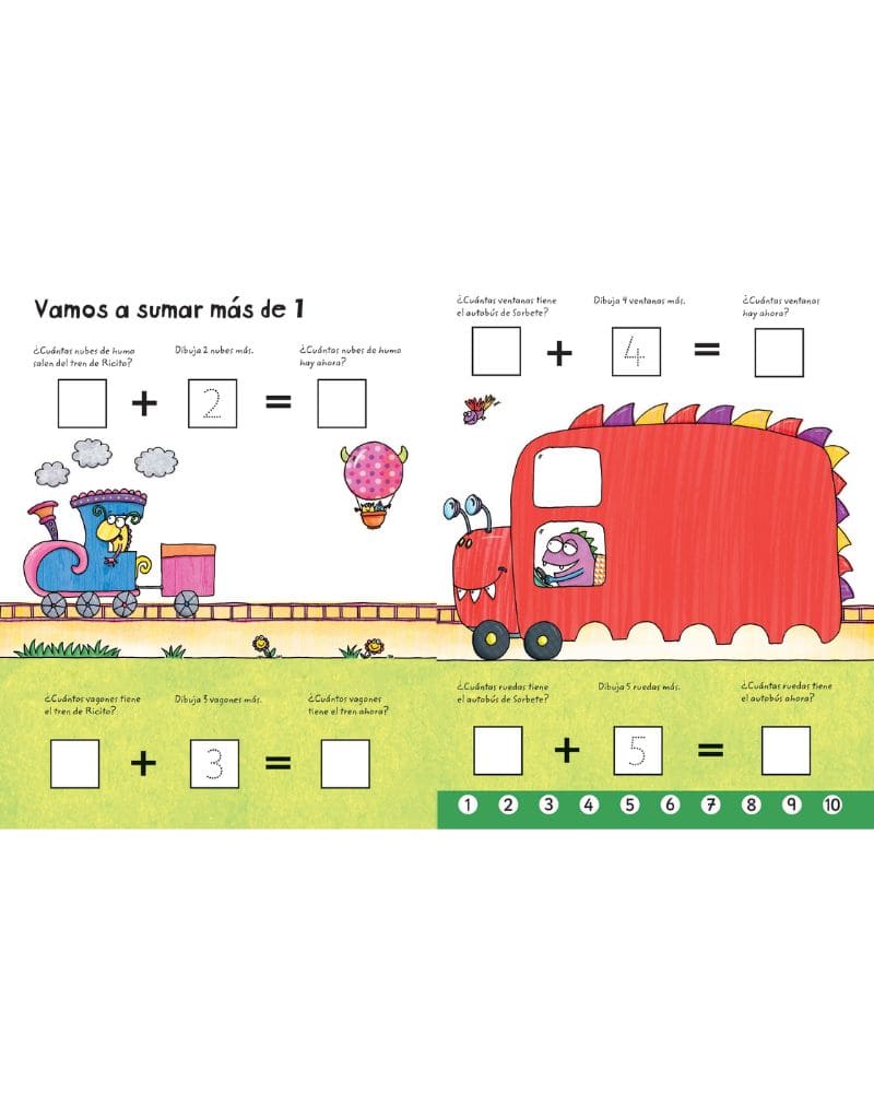 Un libro pizarra para que los niños aprendan a sostener y controlar el rotulador borrable y practiquen las operaciones matemáticas de sumar y restar. La tinta de borrado en seco y las páginas plastificadas los hacen ideales para practicar los trazos una y otra vez.