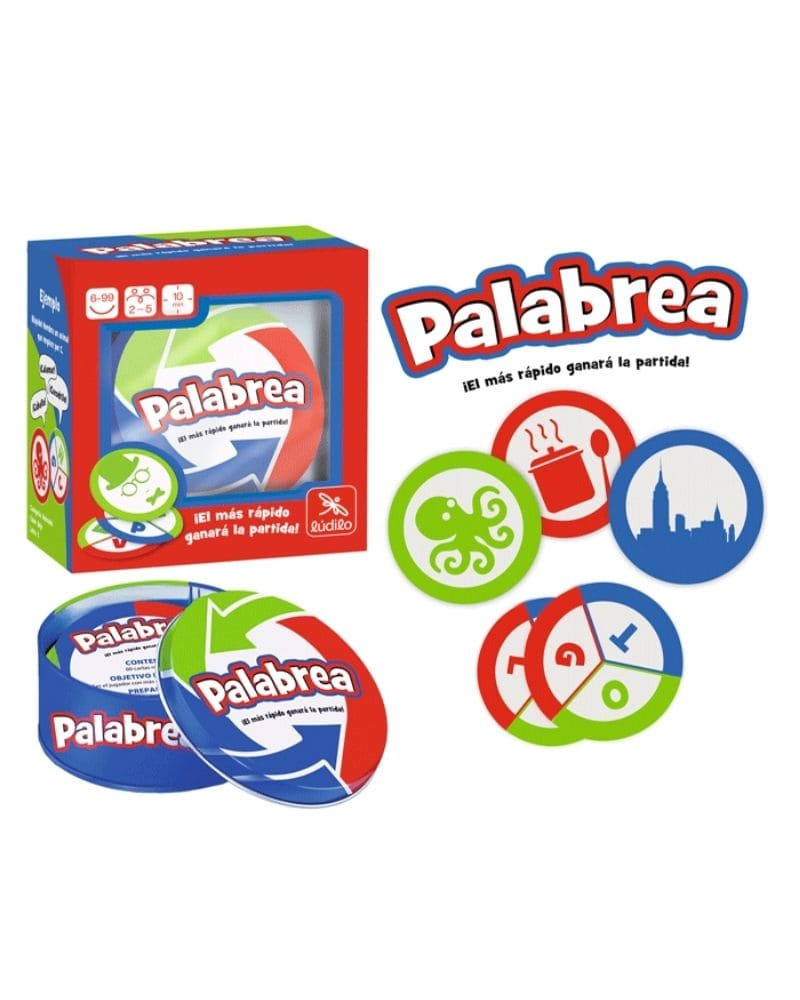 Palabrea con este divertido juego de cartas de doble cara. En una cara se representan las 10 categorías del juego y En la otra 3 letras de distinto color. Sé el primero en encontrar una palabra de la categoría que indica la carta y que comience por la letra del mismo color.