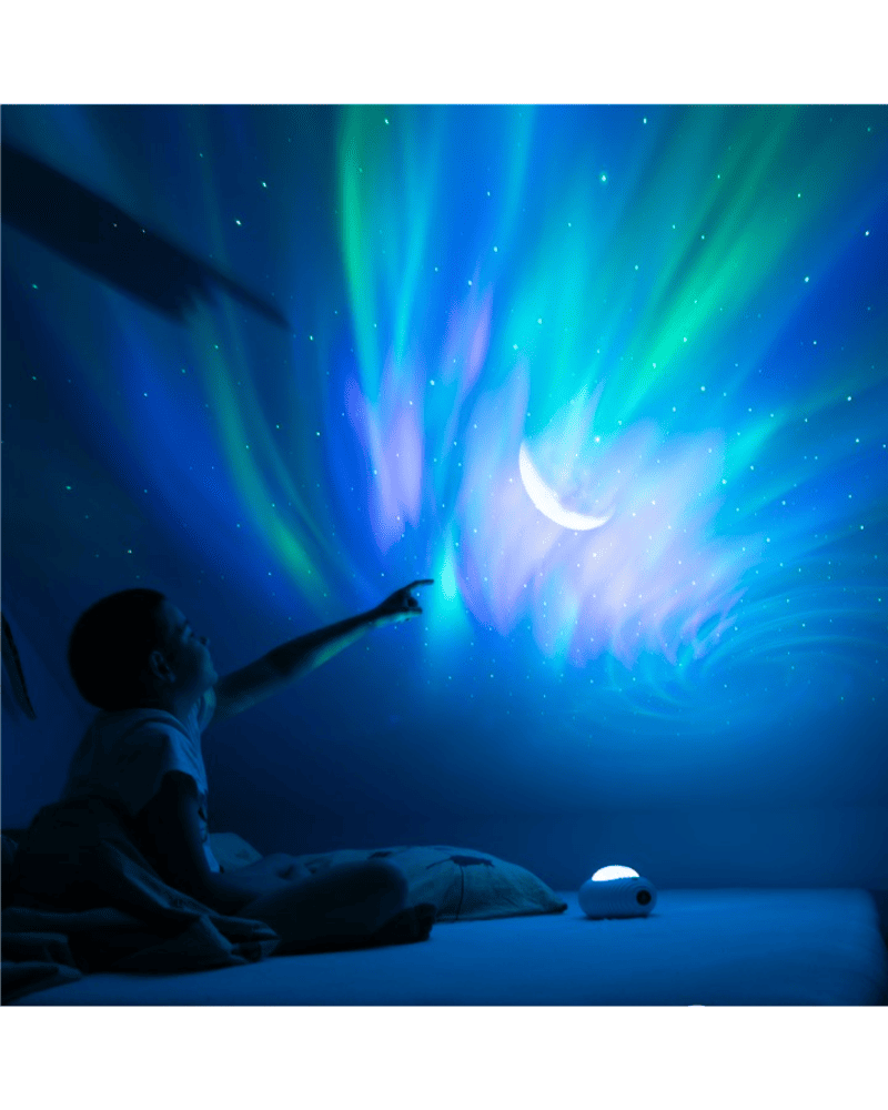 Proyecciones: estrellas, luna y aurora multicolor.