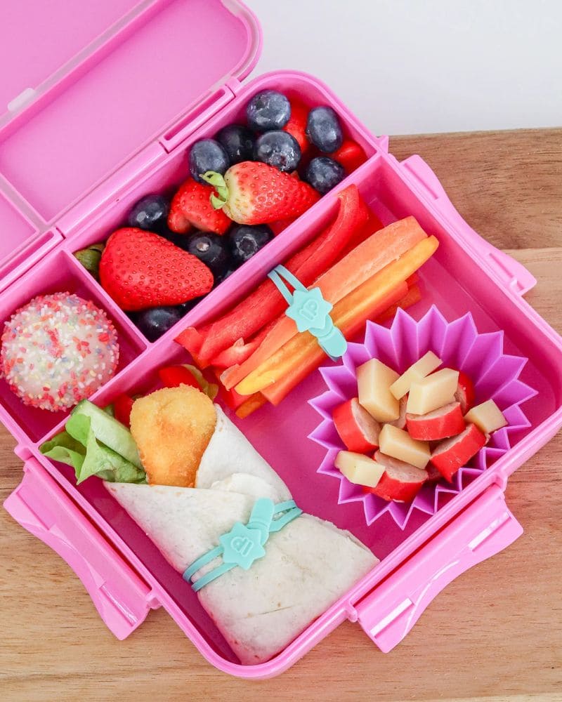 ¡Mantén los almuerzos organizados y llenos de color con el set de 7 bandas para wrap multicolor de Lunch Punch! Estas prácticas bandas de silicona son perfectas para envolver wraps, hot dogs, mini hamburguesas, crepes o bastones de verduras, manteniendo los alimentos bien sujetos y listos para disfrutar.