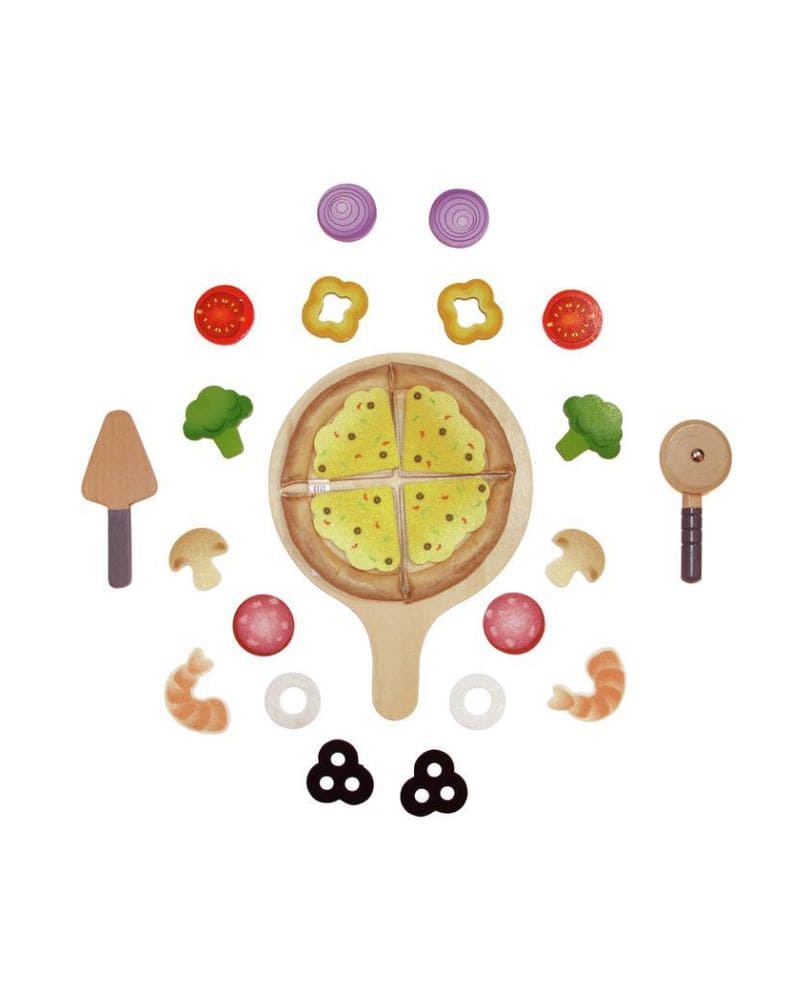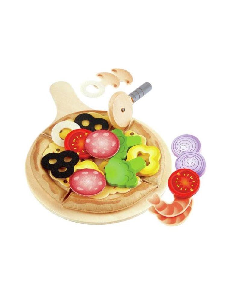 Con este set de pizza, los niños pueden explorar la cocina italiana mientras juegan a preparar y servir sus propias pizzas. Incluye una base de pizza cortable en porciones, servidor de pizza, cortador, gambas, verduras, tomates y otros ingredientes. Además, incluye un horno que también funciona como caja de la pizza. Este set permite a los pequeños desempeñar distintos roles en la cocina y experimentar con el juego imaginativo.