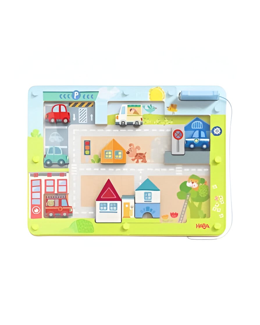 Explora la ciudad con este tablero magnético portátil y compacto. Incluye un lápiz magnético que permite dibujar y girar las imágenes para crear nuevas escenas, fomentando la creatividad y el juego imaginativo. Ideal para viajes, momentos de espera o para jugar en casa, manteniendo todo el contenido seguro y sin piezas sueltas.