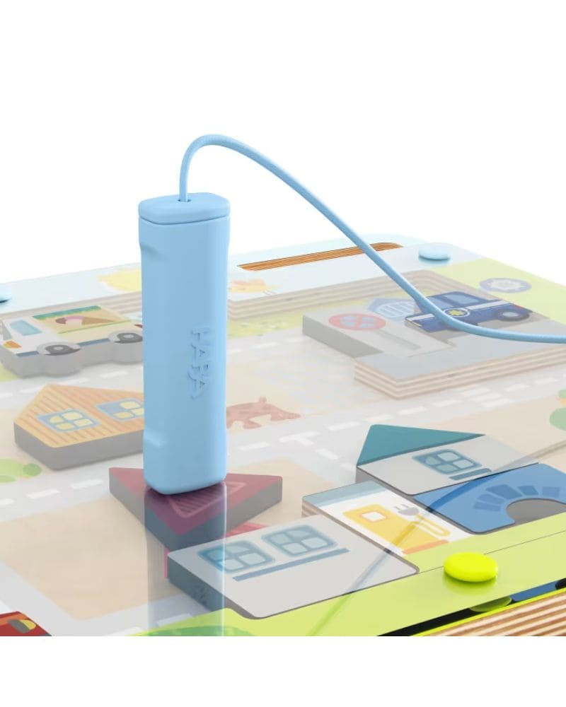 Usa el lápiz magnético para dibujar, mover o girar las imágenes en el tablero. Los niños pueden inventar historias, combinar elementos y crear escenas urbanas mientras desarrollan la coordinación y observación.
