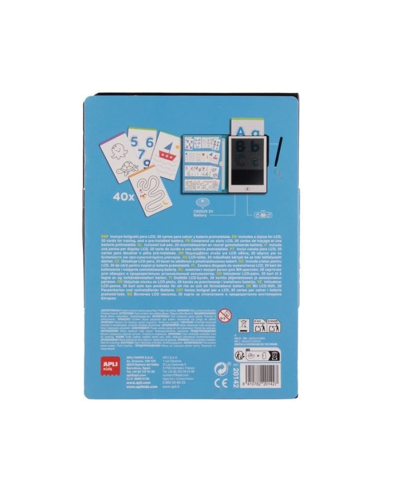 Nuestra pizarra LCD educativa está diseñada para que los peques a partir de 4 años desarrollen su grafomotricidad de una forma divertida e interactiva. Incluye 40 plantillas con letras, números y dibujos, que permiten practicar escritura, dibujo y trazado de forma ilimitada.