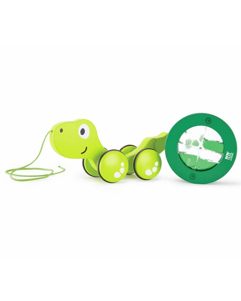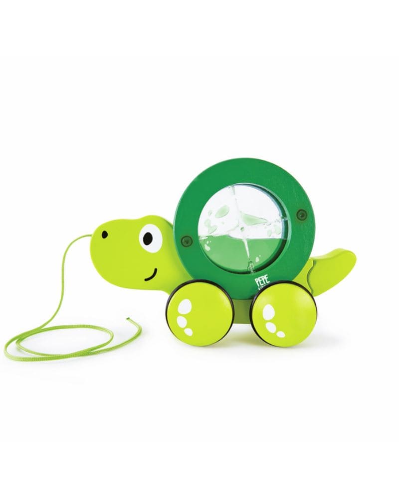 Tito la Tortuga es un juguete de arrastre con caparazón giratorio que acompaña a los más pequeños mientras aprenden a caminar y mantener el equilibrio. Al tirar de Tito, el agua dentro de su caparazón se mueve, generando un efecto visual divertido que mantiene al niño motivado mientras explora y se desplaza por el espacio. Su caparazón también puede usarse por separado para juegos adicionales.