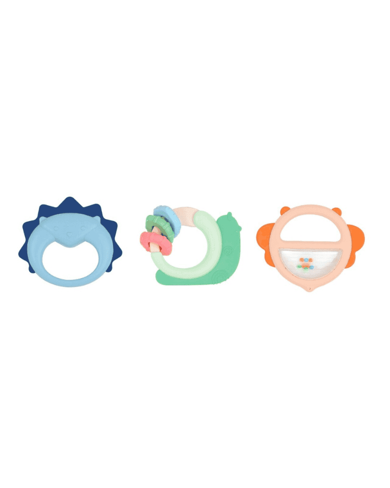Incluye 3 sonajeros: erizo, caracol y mariposa.