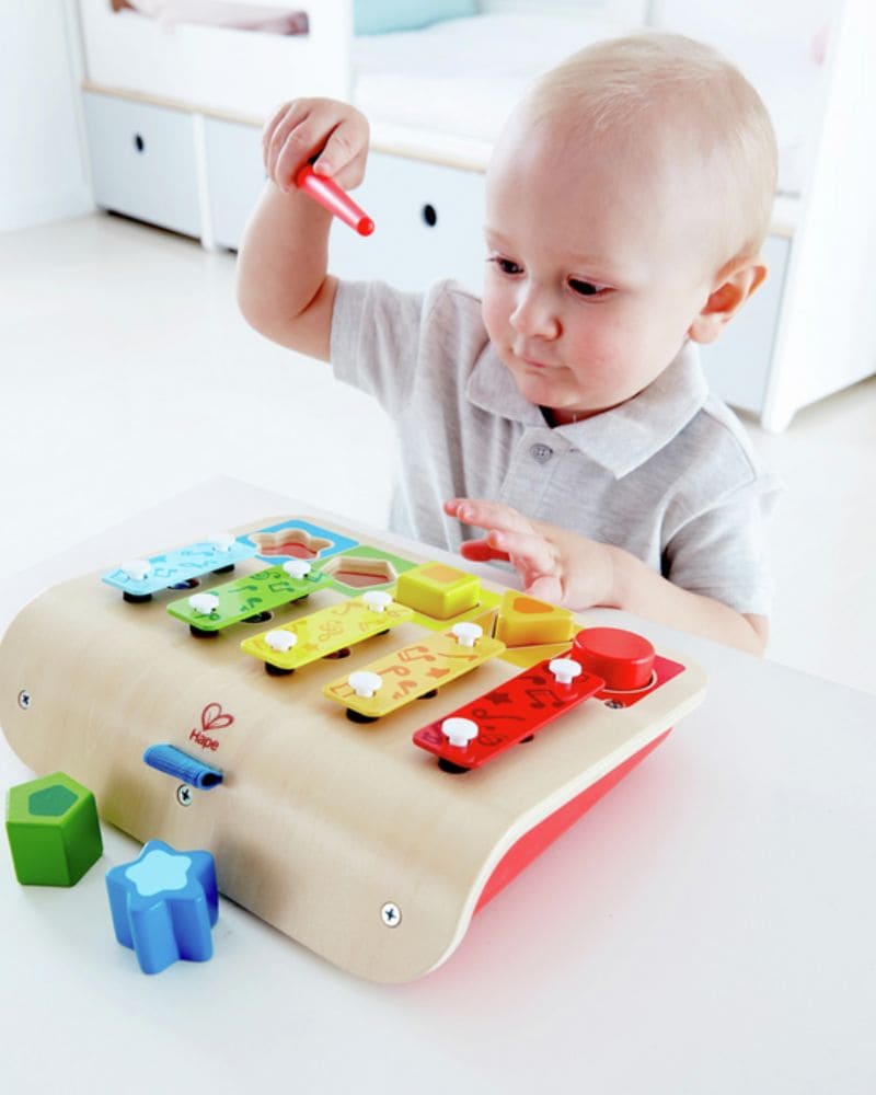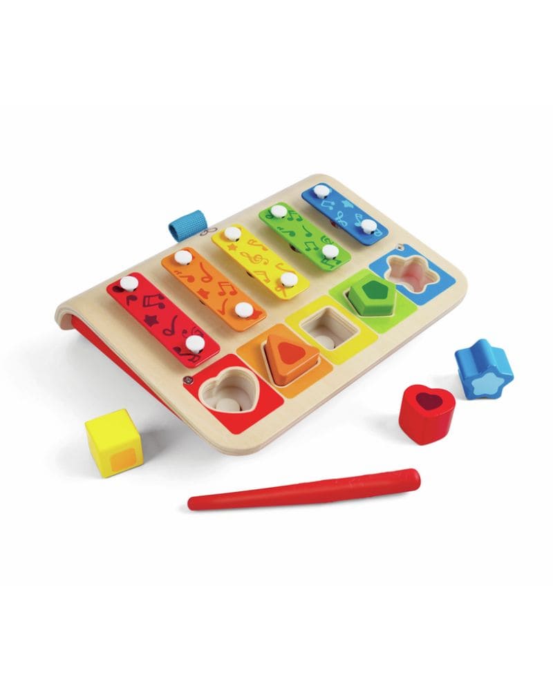 Favorece la coordinación mano-ojo y la motricidad fina al colocar las piezas y tocar el xilófono.